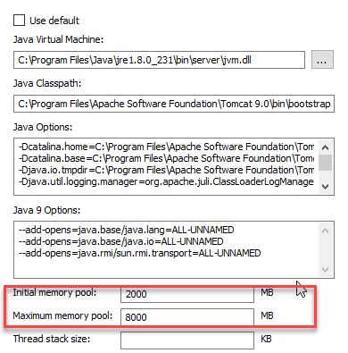 Additonal Tomcat CORS settings can be configured in the same way as shown above using the corresponding JVM parameter for each: