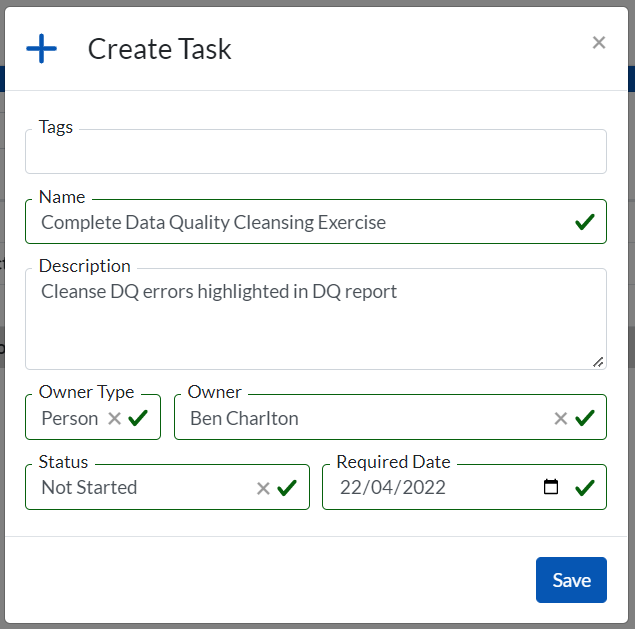 Populate the fields in the ‘Create Task’ window.